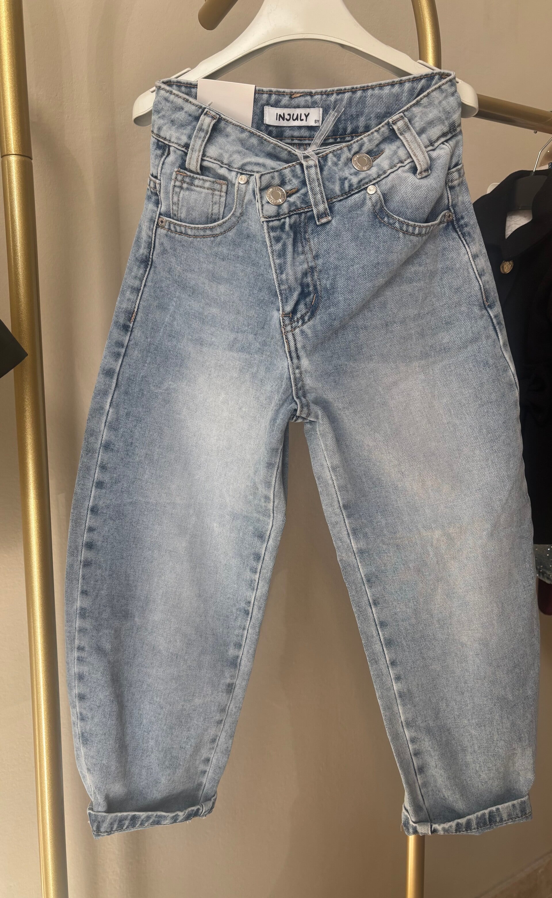 Jeans balloon bottone assimetrico