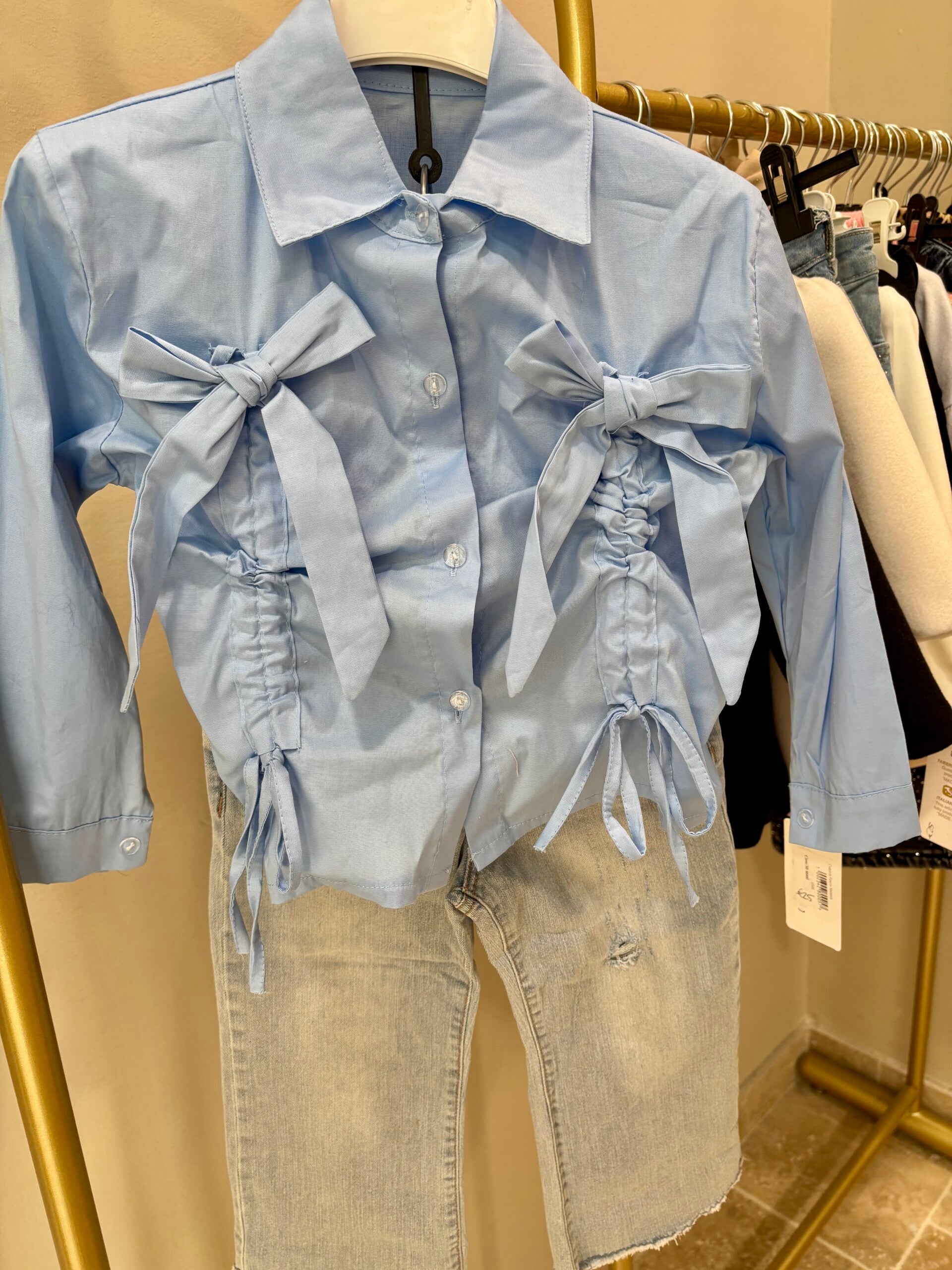 Camicia azzurra con fiocchetti