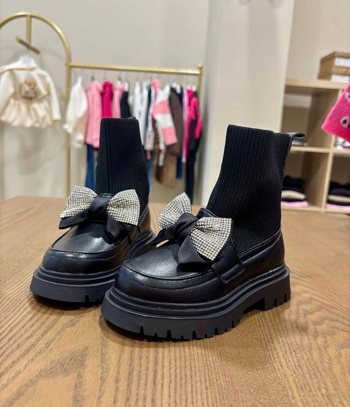 Stivaletto con fiocco glitterato