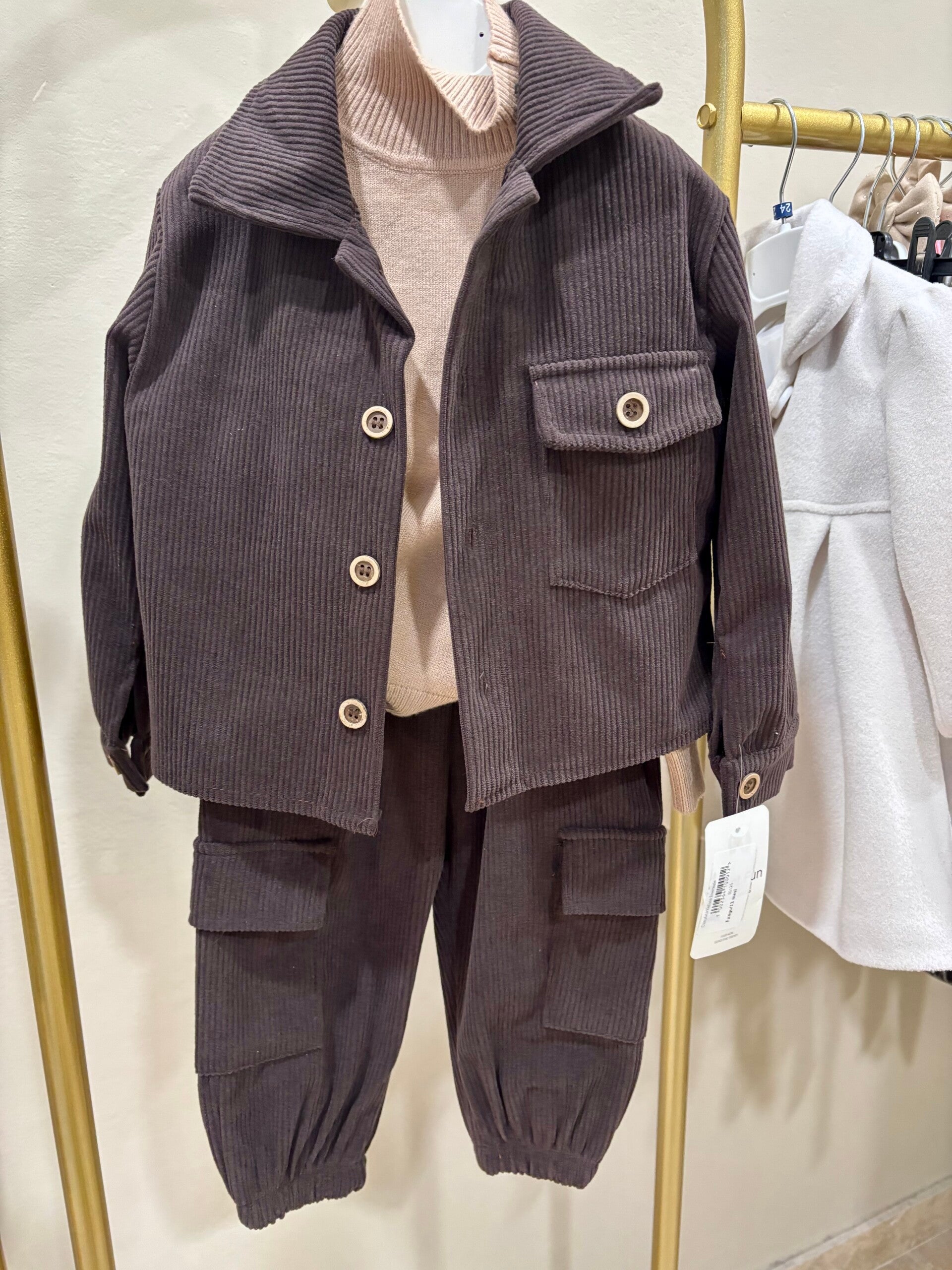 Completo marrone in velluto camicia e pantalone cargo